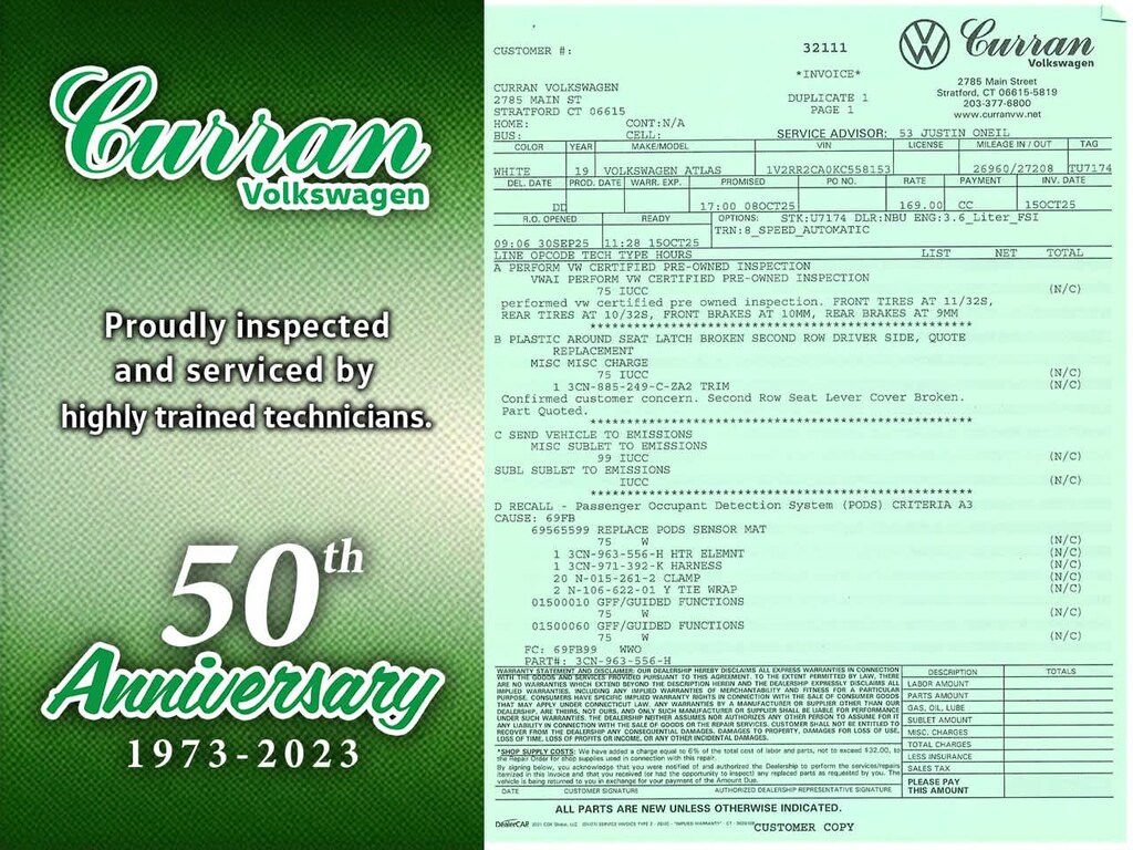 What separates Curran VW inventory from other dealers? All Certified vehicles undergo a thorough CT DMV Safety and 100+ Volkswagen Certified inspection. Every vehicle is fully serviced and brought up to date on maintenance. Unlike other dealers that may do the minimum to retail a vehicle, we go above and beyond, making sure every car is in as good mechanical shape for you as it possibly can be. All reconditioning is documented, and a full repair order on all our vehicles is included.