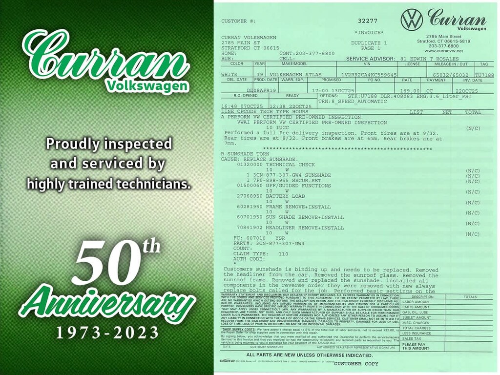 What separates Curran VW inventory from other dealers? All Certified vehicles undergo a thorough CT DMV Safety and 100+ Volkswagen Certified inspection. Every vehicle is fully serviced and brought up to date on maintenance. Unlike other dealers that may do the minimum to retail a vehicle, we go above and beyond, making sure every car is in as good mechanical shape for you as it possibly can be. All reconditioning is documented, and a full repair order on all our vehicles is included.