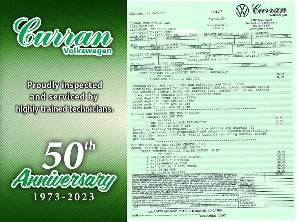What separates Curran VW inventory from other dealers? All Certified vehicles undergo a thorough CT DMV Safety and 100+ Volkswagen Certified inspection. Every vehicle is fully serviced and brought up to date on maintenance. Unlike other dealers that may do the minimum to retail a vehicle, we go above and beyond, making sure every car is in as good mechanical shape for you as it possibly can be. All reconditioning is documented, and a full repair order on all our vehicles is included.