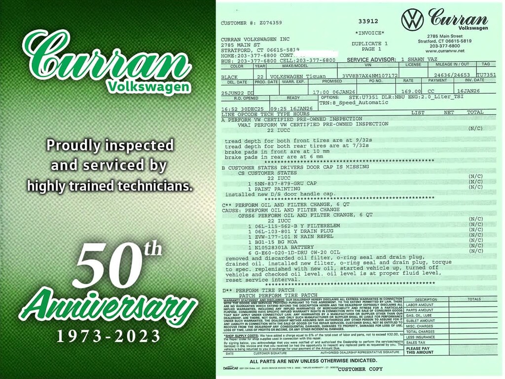 What separates Curran VW inventory from other dealers? All Certified vehicles undergo a thorough CT DMV Safety and 100+ Volkswagen Certified inspection. Every vehicle is fully serviced and brought up to date on maintenance. Unlike other dealers that may do the minimum to retail a vehicle, we go above and beyond, making sure every car is in as good mechanical shape for you as it possibly can be. All reconditioning is documented, and a full repair order on all our vehicles is included.