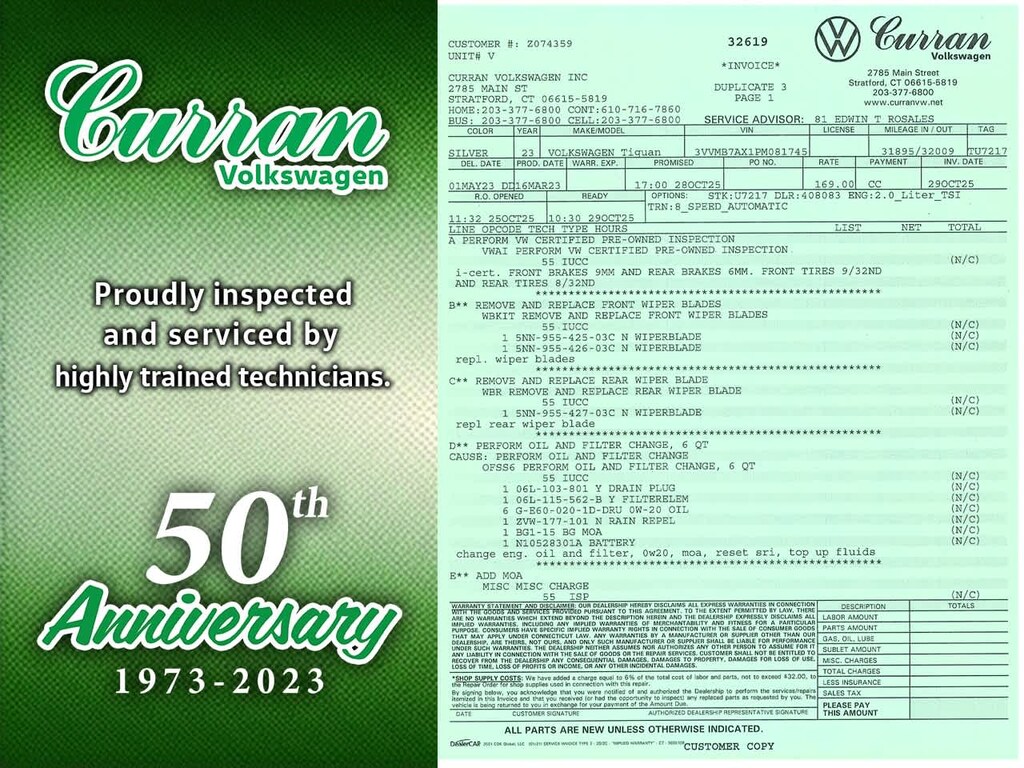 What separates Curran VW inventory from other dealers? All Certified vehicles undergo a thorough CT DMV Safety and 100+ Volkswagen Certified inspection. Every vehicle is fully serviced and brought up to date on maintenance. Unlike other dealers that may do the minimum to retail a vehicle, we go above and beyond, making sure every car is in as good mechanical shape for you as it possibly can be. All reconditioning is documented, and a full repair order on all our vehicles is included.