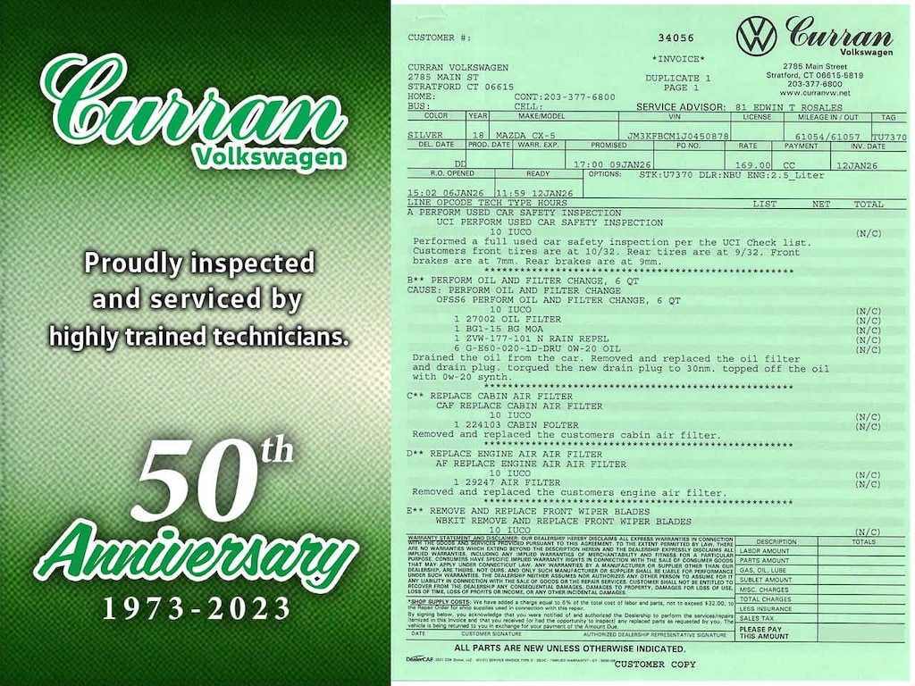 What separates Curran VW inventory from other dealers? All pre-owned vehicles undergo a thorough CT DMV Safety inspection. Every vehicle is fully serviced and brought up to date on maintenance. Unlike other dealers that may do the minimum to retail a vehicle, we go above and beyond and heavily invest our resources into making sure every car is in as good mechanical shape for you as it possibly can be. All reconditioning is documented, and a full repair order on all our vehicles is included.