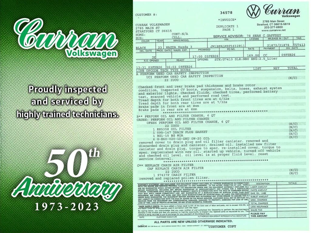 What separates Curran VW inventory from other dealers? All pre-owned vehicles undergo a thorough CT DMV Safety inspection. Every vehicle is fully serviced and brought up to date on maintenance. Unlike other dealers that may do the minimum to retail a vehicle, we go above and beyond and heavily invest our resources into making sure every car is in as good mechanical shape for you as it possibly can be. All reconditioning is documented, and a full repair order on all our vehicles is included.