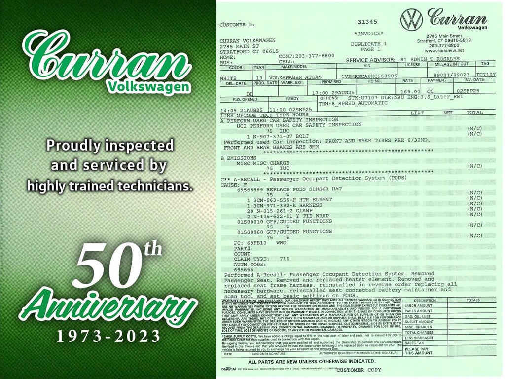 What separates Curran VW inventory from other dealers? All pre-owned vehicles undergo a thorough CT DMV Safety inspection. Every vehicle is fully serviced and brought up to date on maintenance. Unlike other dealers that may do the minimum to retail a vehicle, we go above and beyond and heavily invest our resources into making sure every car is in as good mechanical shape for you as it possibly can be. All reconditioning is documented, and a full repair order on all our vehicles is included.