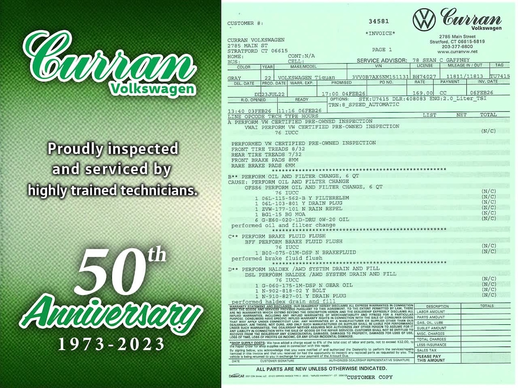 What separates Curran VW inventory from other dealers? All Certified vehicles undergo a thorough CT DMV Safety and 100+ Volkswagen Certified inspection. Every vehicle is fully serviced and brought up to date on maintenance. Unlike other dealers that may do the minimum to retail a vehicle, we go above and beyond, making sure every car is in as good mechanical shape for you as it possibly can be. All reconditioning is documented, and a full repair order on all our vehicles is included.